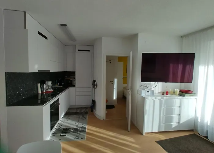 Αυτό το διαμέρισμα 80 μ^2 απέχει 45 χλμ. από το αεροδρόμιο Σιόν. Εάν νοιώθετε ενέργεια και έχετε όρεξη για δράση, θα απολαύσετε πεζοπορία, μίνι γκολφ και πίνγκ-πόνγκ.